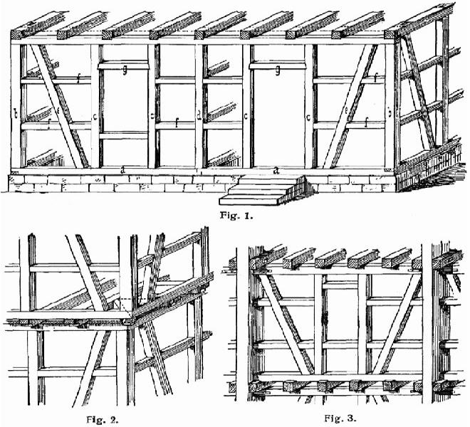 基礎之上是以木料構造的桁架。桁架之間,填以泥坯或磚。一般外表除桁架外,涂以白色。這類建筑風格構成了德國12世紀以來最有特色的建筑。多見于德國中,南部的一些城市。周邊國家,尤其是奧地利,瑞士,法國,甚至英國也有一定數(shù)量分布。
