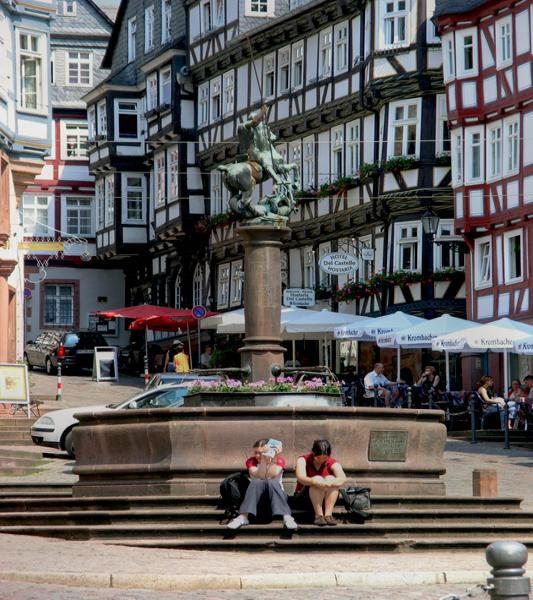 Marktplatz廣場水泉背后的許多Fachwerkhaus