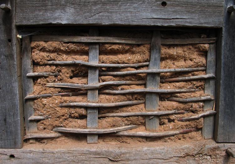 據(jù)介紹,除木質桁架結構外,大面積的桁架空間,填充泥坯。小面積的是用葡萄枝編織的芭,然后涂上含有草,或麻筋的泥。