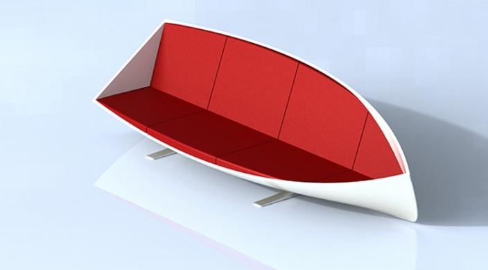 設(shè)計師的靈感來源于“全球變暖現(xiàn)象”,這個設(shè)計既是沙發(fā)也是一艘船。由于全球變暖,海平面上升,這款家具正好適用于那些沿海地區(qū)的人們,它可以簡單的從沙發(fā)轉(zhuǎn)化成船只——只用把沙發(fā)靠墊拿走,下面就是一個帶劃槳的船。