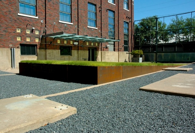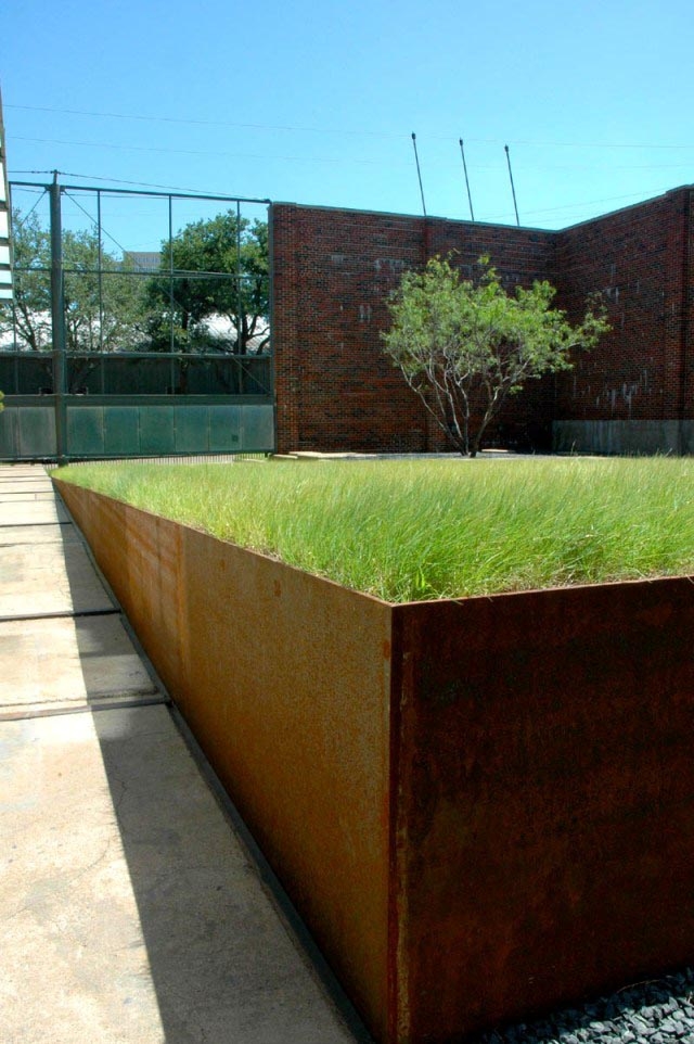 4 升起的銹蝕鋼板基座,野牛草,庭院孤植樹