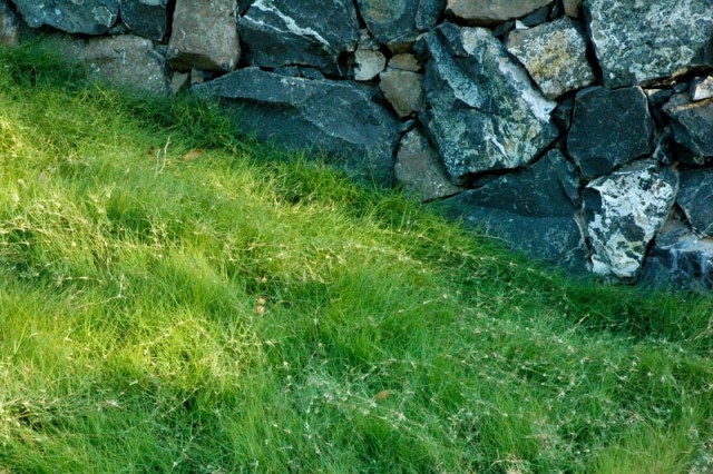 14 柔軟的草和花崗巖石墻