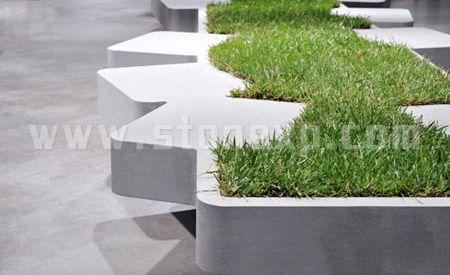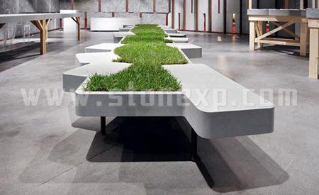 綠色的休息地,簡潔的折線造型,線白的天然石材,純凈、時尚、大方,讓人們的心靈深淀。