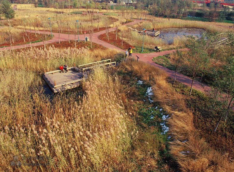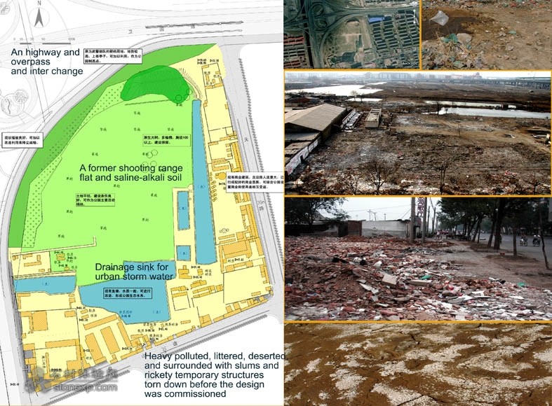 這是一個在天津的公園,場地被城市快速路包圍,是一塊垃圾遍布,收到污染,被人遺忘的區域,并且有相當嚴重的鹽堿地問題。2003年,天津市政府打算改造這里,并將這個艱巨的任務交到了景觀設計師手中。