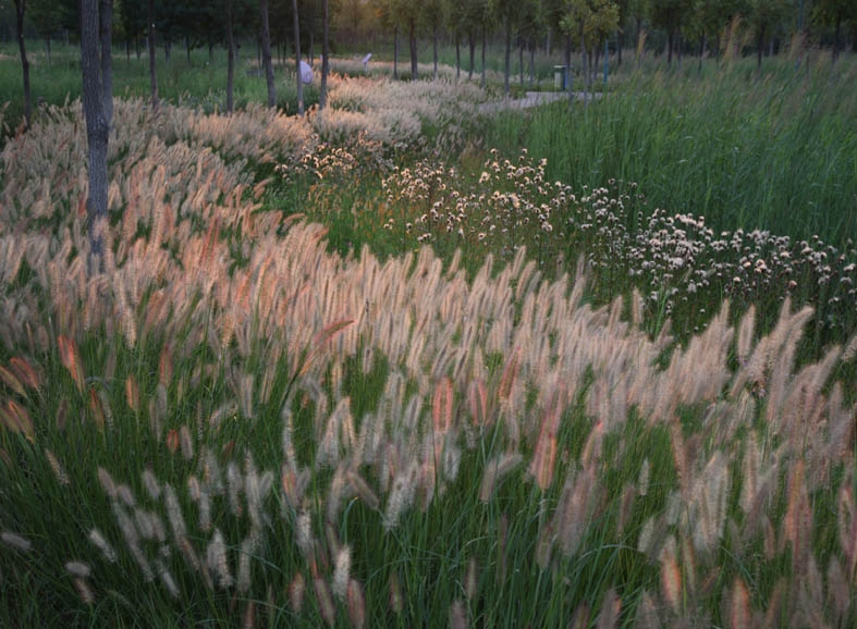 這個項目在不斷發展的進程中,有助于確定新的景觀美學。凌亂的形式,無計劃的生物多樣性,和自然“混亂”在一起,展現植物的生活,揭露他們真正的美麗,真正的豐富。這個生態的適應性調色板已經成為天津社會的“寶地”。