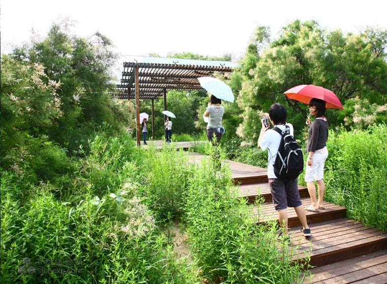 7 小平臺,周圍是檉柳。涼亭的選址時精心挑選的景觀節點。