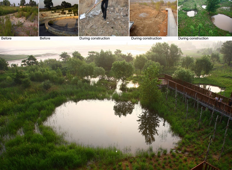 9 修復的濕地和以前比較。場地以前是廢棄的沿海公園,現在這些點狀池塘容納著場地的雨水徑流。