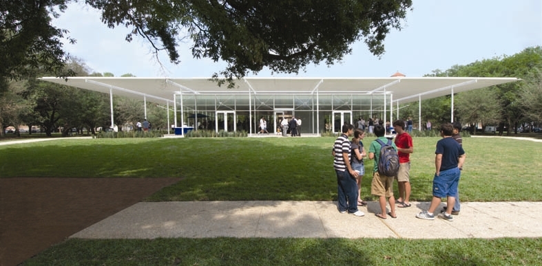 項目概述:作為賴斯大學校園里地標類地點,該項目展示了景觀設計促進社會交流以及改善人類生存條件的能力。Brochstein亭被營造出一個強大的空間體系,將以前那個無序的、未充分利用的四方區域轉化成了學校里學生活動的中心。