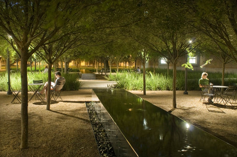只敏感的抓住交通的核心,抓住斑駁的光,抓住最單純的水。。。直接快捷的達到自己的目標,塑造了這個堪稱完美的空間。我想,這里一定可以改變萊思大學許多人的回憶。美國休斯頓的景觀公司The Office of James Burnett設計。