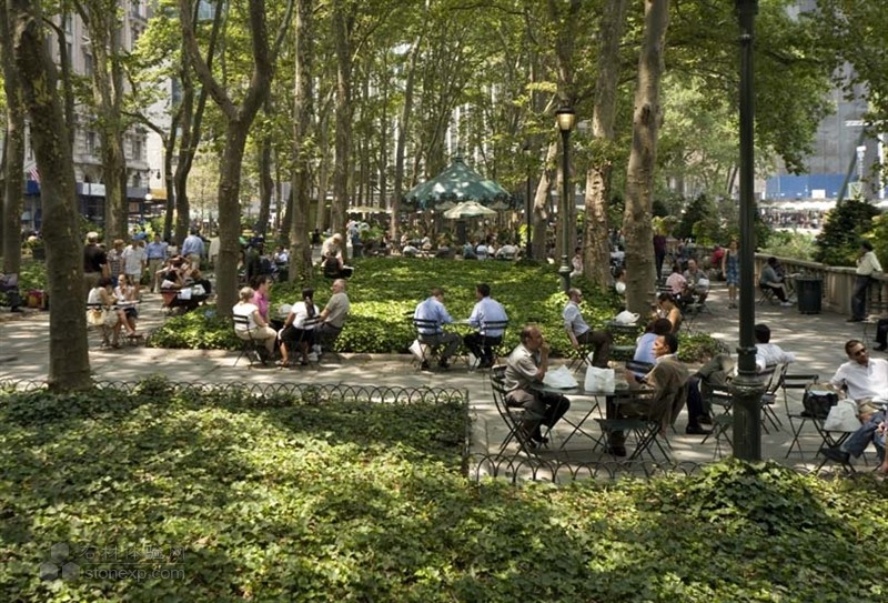 清新美麗。 景觀設計師很好的平衡了用地,邊界,以及材料。 公園的管理也應當受到贊揚。 布賴恩特公園發生了一系列的改變和翻新。因為公園具有很多的驚人歷史問題,這些問題一一被解決,由一個廢棄空間轉變成為一個有效的空間。 人們喜歡這樣的經驗。 把歐洲開放空間中休閑桌椅引入美國,這是一個偉大,勇敢的舉動,我們希望看到更多這樣的空間,以及人們在其中的身影。