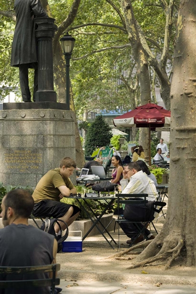 布賴恩特公園引來光明是在1979年,紐約公共圖書館出臺了一個更新計劃,其中包括了解決布賴恩特公園的問題,使其成為圖書館的“后院”。 城市規劃師和社會學家 William H. Whyte,是研究設計對人行為影響的先鋒。他分析了公園成為罪犯避難所的原因,并建議了可行的解決辦法。 他建議了簡單有效改變場地的辦法,比如去掉鐵柵欄和灌木籬,讓行為和視覺空間更方便。 “可達性是解決方案的核心所在,” Whyte說。 以懷特的報告為指導,在 1986年聘用景觀設計師,將其轉變成一個安全和充滿活力的城市公共空間-----布萊恩特公園。 該項目是一個具有里程碑意義的實驗設計方案和社會學和行為學研究探索。