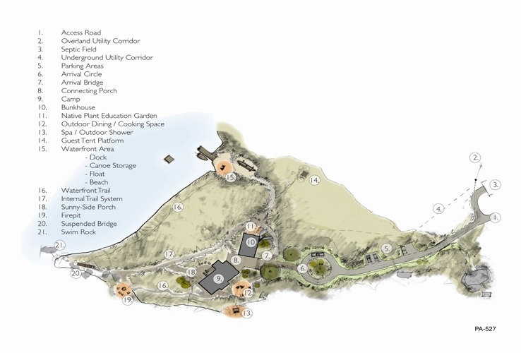 在頗具年代的鄉村營地中,設計公司在湖邊一個較偏遠的位置開發了一個安全的私家隱居地(秘密花園).希望建立他人不可接近的,可以自由呼吸的,平和安寧之處。
