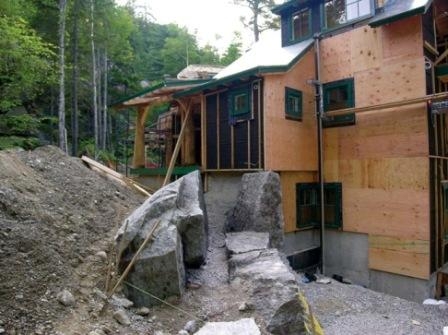 相當多的石頭被安置在建筑周圍。