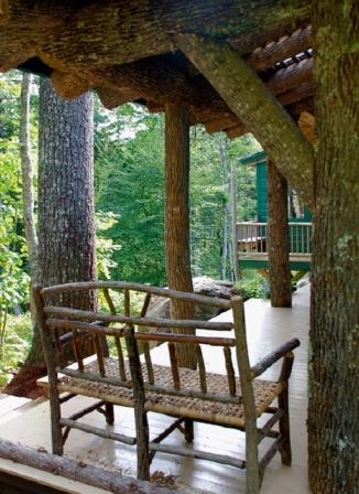 原生態門廊,運用當地木材,甚至保留樹皮。