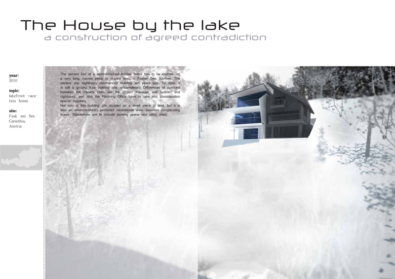 在Kärnten的Faaaker See,一塊非常狹長的坡地上,矗立著一棟半獨立式度假小屋。