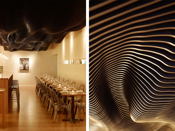 作品蠻像燒焦的木頭,這也是設計師切合燒烤店設計的主題。