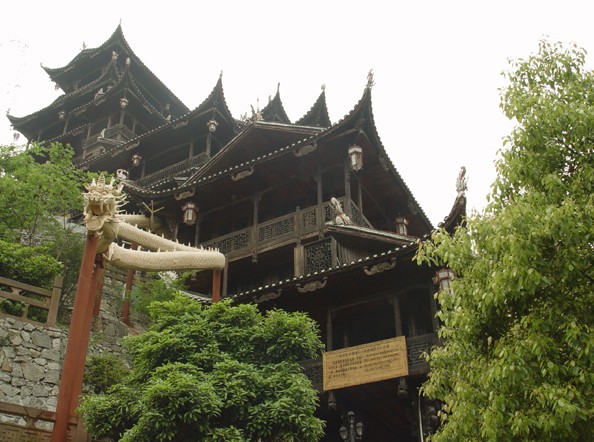4月10日,隨著民族標志性建筑錦江閣的上梁封頂,永順縣民族建筑策劃設計大師李宏進的事業又進入一個傳奇的新時期。由他策劃設計的又一驚天壯舉———“天下第一沖天吊腳樓”系統工程,落戶貴州并于2月20日奠基開工,靖江閣是該系統工程中的第一個完工建筑。這是繼李宏進設計實施張家界土家風情園“九重天”、999只白虎組成的土家白虎堂、龍山“惹巴娜”風雨橋、“千人毛古斯”、恩施土司城“九進堂”及苗王城等10多項創世界吉尼斯紀錄作品之后,在湘鄂渝黔四省市邊區又一次成功策劃、實施的民族建筑項目。