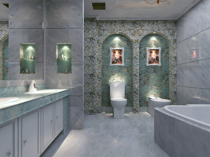 應用:海冰藍應用于客廳墻面。 海冰藍屏風 屏風一般陳設于室內的顯著位置,起到分隔、美化、擋風、協調等作用。它是古代家居裝飾不可分割的整體,呈現出一種和諧之美、寧靜之美。“屏風”一詞也很有詩意,它營造了一種似隔非隔,似斷非斷的寧靜空間。 本設計將特色石材海冰藍加工成異形弧板,以鏤空的方式交錯排列,邊框使用不銹鋼和紅木固定。這個海冰藍屏風將客廳隔開,若隱若現,別有一番韻味。 海冰藍 墻面 大廳 這是一家會所的大廳設計,地面和墻面同別的會所設計一樣,使用天然石材裝飾,不過本設計的亮點在于特色石材海冰藍的裝點,海冰藍裝飾的門套,色彩清新,給大廳注入無限的活力。 |