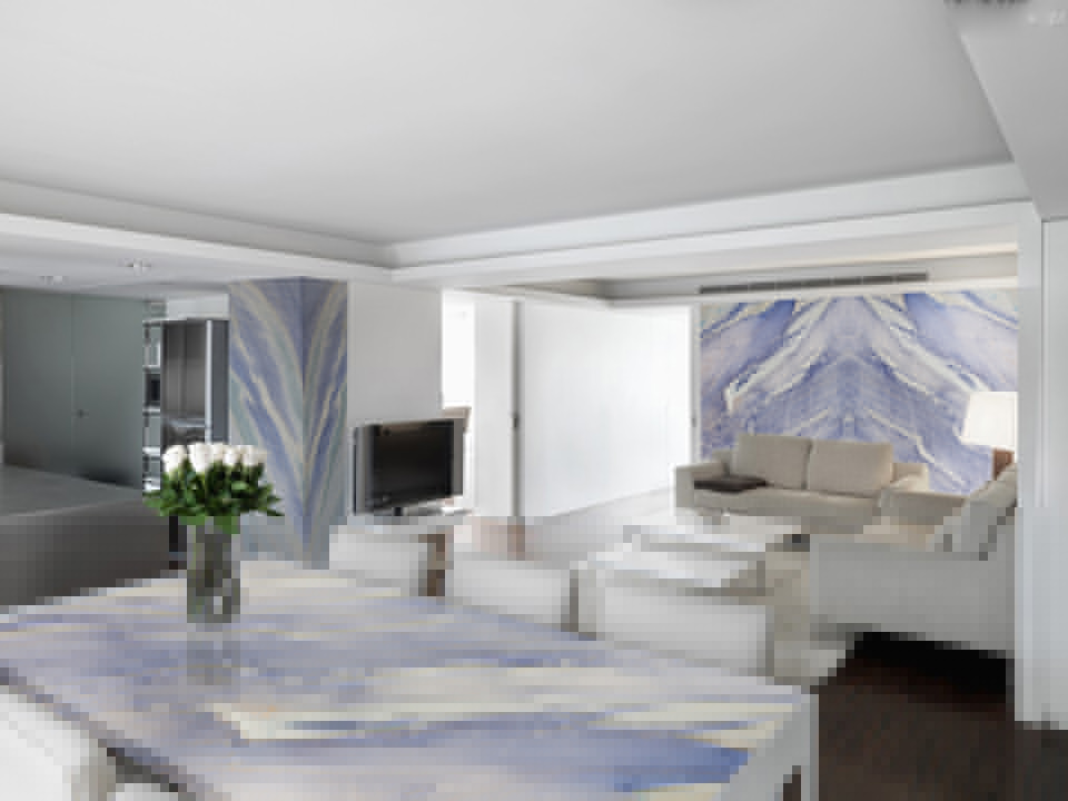 版面顏色清新明快,天藍和純白相間的底色,讓整個裝飾空間呈現出藍天白云中仙境般的感覺。