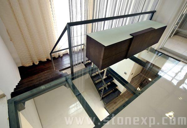 鋼架玻璃平臺順著樓梯向下層延伸
