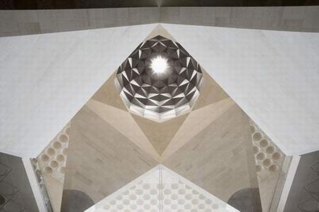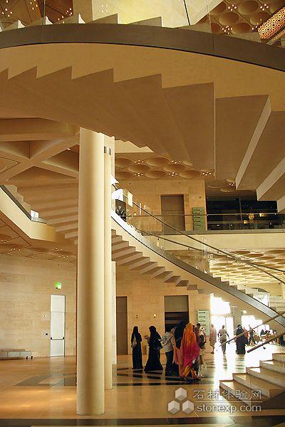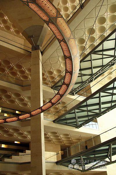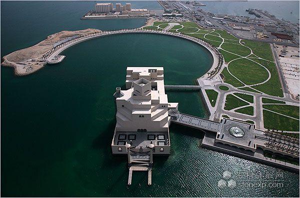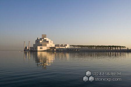 多哈伊斯蘭藝術博物館位于卡塔爾首都多哈海岸線之外的人工島上﹐占地4.5萬平方米,是迄今為止最全面的以伊斯蘭藝術為主題的博物館。博物館外墻用白色石灰石堆疊而成,折射在蔚藍的海面上,形成一種懾人的宏偉力量。而再看建筑的細部,典型的伊斯蘭風格幾何圖案和阿拉伯傳統拱形窗,又為這座龐然大物增添幾分柔和,稍稍中和了它的英武之氣。博物館中庭偌大的銀色穹頂之下,150英尺高的玻璃幕墻裝飾四壁,人們可以透過它望見碧海金沙。