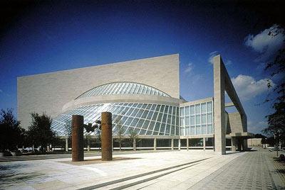 圖書館并非在同一水平線上,一些空間低于地面,使建筑中最動(dòng)情的因素留于地表。圖書館是由一個(gè)10層樓高的三角形塔(主要用于文檔放置,教育和行政),2層的展示基地(展示基地及300位的劇院) 和110英尺高的紀(jì)念幕,整個(gè)搭配和諧一致。
