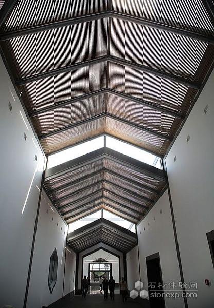 在整體布局上,博物館新館巧妙地借助水面,與緊鄰的世界文化遺產拙政園、全國重點文物保護單位忠王府融會貫通,成為拙政園、忠王府建筑風格的延伸和現代版的詮釋。”新博物館屋頂設計的靈感來源于蘇州傳統的坡頂景觀———飛檐翹角與細致入微的建筑細部。然而,新的屋頂已被科技重新詮釋,并演變成一種奇妙的幾何效果。玻璃屋頂將與石屋頂相互映襯,使自然光進入活動區域和博物館的展區,為參觀者提供導向。金屬遮陽片和懷舊的木作構架將在玻璃屋頂之下被廣泛使用,以便控制和過濾進入展區的太陽光線。光線的層次變化,讓人入詩入畫,妙不可言。新館與拙政園相互借景、相互輝映,它將成為一代名園拙政園的現代化延續。許多人反映,看新館設計,越看越有味道,會感到一種震撼心靈的效果。