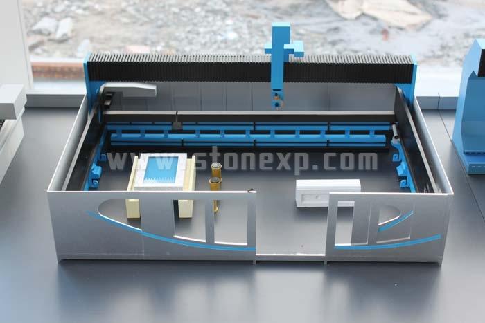 兩條生產線總長一百零八米。拋光線最大有效拋光寬度為2.2米,最高產能可以超過110㎡/小時,不止產能比其他同類拋光線高出許多,其加工質量也是鶴立雞群,即便是一些難上光的材料如:金蜘蛛、白水晶等,拋光后大板的光度會比普通拋光線高5度以上。