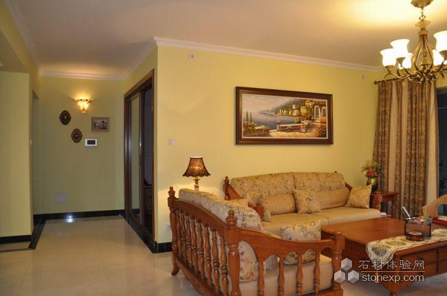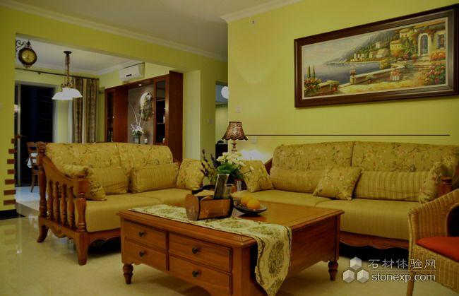 千面造型沙巖石與英美古典墻紙打造的電視主墻,營造鄉村風最佳的利器,讓磚墻呈現層次更多的橫剖面質感,在現代感的鄉村風格中,形塑了一股更自然的氣氛。