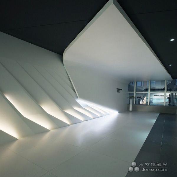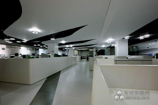 本案在細部設計的工藝非常完美,觸感精致順滑,同時極具現代動感,超脫現代辦公的舊俗,將心理學與形體學、視覺與觸覺、將儒與道的哲學理念融入進來。首先電梯間墻的折彎懸板酷似“船槳”的創意,如同堅實流暢欺負的肌肉線條,在優雅的燈光下動蕩起伏,隨著視角變化,在陽光和燈光的不同照射下散發十足的動感力量,仿若船夫那強勁的臂膀,在艄公的號子下,波光粼粼的大海中揚帆起航。在顏色處理上也將素白與純凈細細雕琢,將清新與自然的情調融入形體與心理學的范疇;而在折彎懸板的盡頭是一座艦橋的造型,運用室內光與自然光的結合下,自然是一艘起航的船舶在海浪中引航高歌;“游艇”外觀的值班室,前廳接待臺及弧形拋面板的創意造型呈現了船上撒網的和諧畫面,彰顯人與自然美妙融合,值班室外墻外觀設計在視覺將人們的視線無限延伸,而動感與脫俗的線條與前臺的造型宛若流水,蕩漾起伏,那溫柔如水又剛柔并濟,將整個畫面襯顯得十足優雅和純凈。而前臺的造型宛如船身在波浪中起伏,又如在漁歌晚唱中收獲豐收的果實;地面灰白與黑金剛的線條,就如同波浪蕩漾,一組地燈閃爍,恰如月光下點點浪花輕吟;天花不同的“海鷗”燈,展現了“海鷗”的不同姿勢,有婉婉戲水,有仰首高歌,有低頭輕吟,在這美妙氛圍下,臻至天人合一的境界;過道墻的玻璃屏風和扶手圖案,在不經意中點綴,她不僅起引導和指示作用,更將整體造型與光線達到至臻結合,如同光線或流水在空中漂浮,墻面的扶手圖案是那船在在波光中運行的劃痕;過道深處光玻璃造型實際上是起照明作用,但在細部處理上,則通過設計用流動玻璃面將光藏在里面,通過光與玻璃面的流動造型和顏色的變化,將光線除了照明外,又形象的將流水與波光的意蘊表達的既動感又含蓄;辦公區的玻璃隔墻,設計師超脫單純的玻璃設計,在玻璃面上設計動感和時尚線條,無論從前還是后,均可看出不同的視覺效果,既象征海的波紋,也象征漁夫灑網的豐收景象,恰似“前后左右各不同,只為深在此景中”; 白色的地角燈延伸擴大了地面和空間界面,而金屬色的條文仿若大海的波光將整個空間的“驚濤拍岸卷起千堆雪”的意境概括再現,整個空間場在恢宏氣勢中整合收卷;辦公區的燈膜“船帆”天花設計與整個空間遙相呼應,又仿佛帆影在海浪中的倒影,隨著海浪姍姍起舞……種種精心的設計使得整個空間和諧而自然。將海的萬千意境與現代辦公設計巧妙結合。