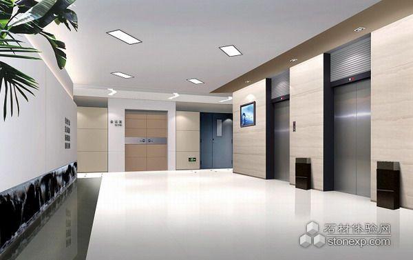 3、電梯間:是整個(gè)空間的交通中樞,也是貫穿樓層的構(gòu)成元素。墻面淺灰色波紋石材和拉絲不銹鋼,地面大白磚,整體色調(diào)統(tǒng)一、現(xiàn)代、穩(wěn)重。