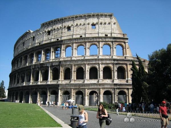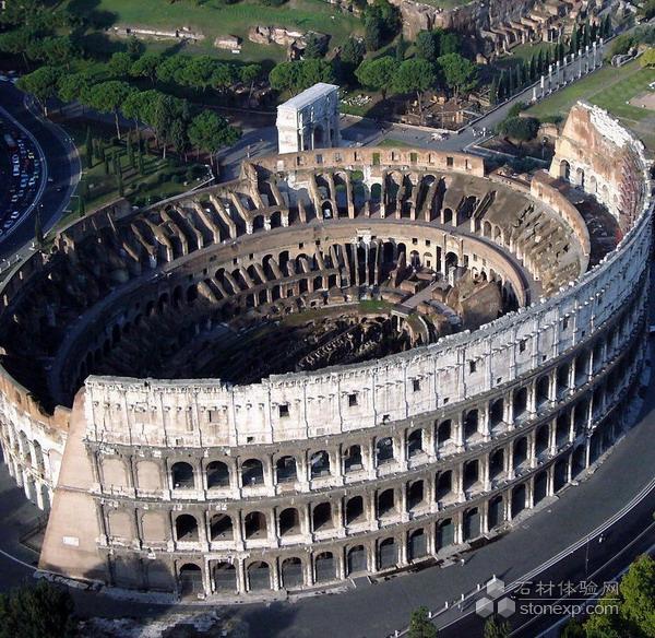羅馬斗獸場,建于公元72至82年間,遺址位于意大利首都羅馬市中心,它在威尼斯廣場的南面,古羅馬市場附近。從外觀上看,它成正圓形;俯瞰時,它是橢圓形的。它的占地面積約2萬平方米,大直徑為188米,小直徑為156米,圓周長527米,圍墻高57米,可以容納近九萬人數的觀眾。圍墻共分四層,前三層均有柱式裝飾,依次為多立克柱式、愛奧尼柱式、科林斯柱式。斗獸場專為野蠻的奴隸主和流氓們看角斗而造。