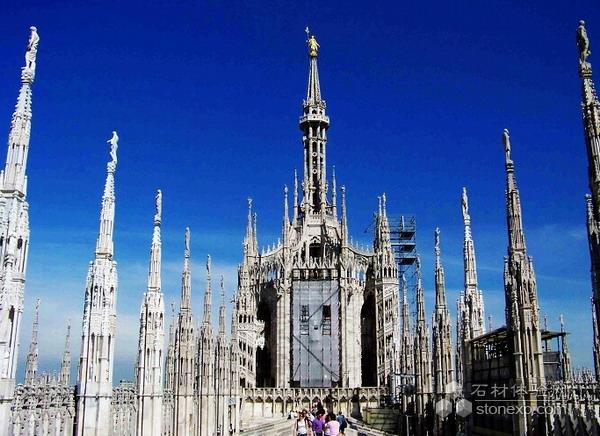 米蘭大教堂,雄踞在意大利米蘭市中心的米蘭大教堂亦稱圣母降生教堂,于公元1386年開工建造,1897年完工,歷時五個世紀。融入了古希臘、羅馬及多種民族的建筑風格,是世界上最大的哥特式教堂,也是規模僅次于梵蒂岡圣彼得大教堂的世界第二大教堂。教堂長158米,最寬處93米。塔尖最高處達108.5米。總面積11700平方米,可容納35000人。