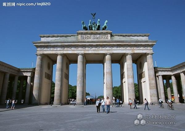 德國 勃蘭登堡門,位于德國首都柏林的市中心,最初是柏林城墻的的一道城門,因通往勃蘭登堡而得名。現在保存的勃蘭登堡門是一座新古典主義風格的建筑,由普魯士國王腓特烈·威廉二世下令于1788年至1791年間建造,以紀念普魯士在七年戰爭取得的勝利。自滑鐵盧戰役以后,勃蘭登堡門逐步成為柏林的象征,也是德國國家的標志。