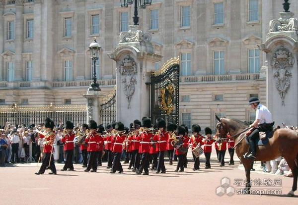 英國 白金漢宮,英國的王宮。建造在威斯敏斯特城內,位于倫敦詹姆士公園(St. James’ Park)的西邊,1703年為白金漢公爵所建而得名,最早稱白金漢屋,意思是“他人的家”。1761年由英王喬治三世購得,作為王后的住宅,稱為女王宮。1825年,英王喬治四世加以重建,作為王宮。從1837年起,英國歷代國王都居住在這里。