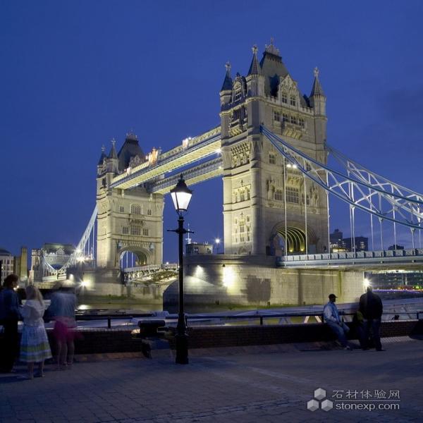 倫敦塔橋,是從英國倫敦泰晤士河口算起的第一座橋(泰晤士河上共建橋15座),也是倫敦的象征,有“倫敦正門”之稱。該橋始建于1886年,1894年6月30日對公眾開放,將倫敦南北區連接成整體,塔橋兩端由4座石塔連接, 兩座主塔高35米。河中的兩座橋基高7.6米,相距76米。登塔遠眺,可盡情欣賞泰晤士河上下游十里風光。假若遇上薄霧鎖橋,景觀更為一絕,霧鎖塔橋是倫敦勝景之一。