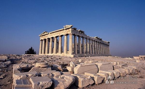 雅典 帕特農神廟, 雅典衛城主體建筑,為歌頌雅典戰勝波斯侵略者的勝利而建。帕特農神廟是供奉雅典娜女神的最大神殿。此廟不僅規模最宏偉,坐落在衛城中央最高處,廟內還存放一尊黃金象牙鑲嵌的全希臘最高大的雅典娜女神像。這座神廟歷經兩千多年的滄桑之變,如今廟頂已坍塌,雕像蕩然無存,浮雕剝蝕嚴重,但從巍然屹立的柱廊中,還可以看出神廟當年的豐姿