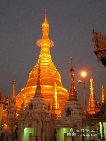 緬甸 仰光大金塔,是一座位于仰光的窣堵坡(佛塔)。其高度為98米,表面則鋪上了一層金,它是緬甸最神圣的佛塔,因為它供奉了四位佛陀的遺物,包括是拘留孫佛的杖,正等覺金寂佛的凈水器,迦葉佛的袍及佛祖釋迦牟尼的八根頭發。緬甸人稱大金塔為“瑞大光塔”,“瑞”在緬語中是“金”的意思,“大光”是仰光的古稱,緬甸人把大金塔視為自己的驕傲。