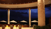 船屋會所位于酒店主體建筑的頂層,一層為酒店大堂,負一層為酒店餐廳。獨特的拱形設計作為酒店的標志性建筑依偎在群山中,與當?shù)芈糜尉包c七仙嶺主峰遙相呼應,與周圍環(huán)境融入得恰到好處,給宛如仙境般的世界增添了幾分姿色。